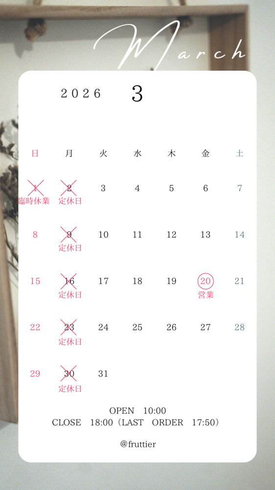 3月営業日カレンダー